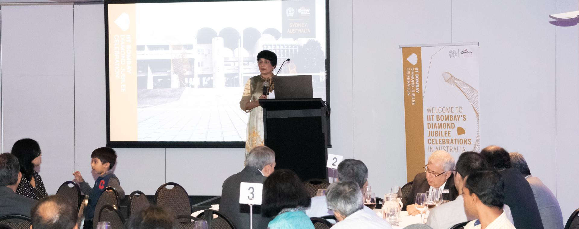 IIT Bombay hosted a gala dinner in Sydney, Australia for its alumni to celebrate the Diamond Jubilee of the Institute. The event was attended by over 130 alumni and their families. The keynote address was delivered by IIT Bombay alumnus Ms. Marlene Kanga, followed by a presentation by Prof. Devang Khakhar, Director of IIT Bombay, Prof. Suhas Joshi, Dean (Alumni & Corporate Relations). IIT Bombay would like to thank all its alumni in Australia for making this event so memorable.