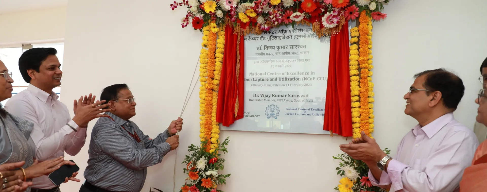 <p>The DST-sponsored National Centre of Excellence in Carbon Capture and Utilization (NCoE-CCU) was formally inaugurated by Dr. Vijay Kumar Saraswat, Hon'ble Member, NITI Aayog, Govt. of India on February 11, 2023 at IIT Bombay, in the presence of the Director, Prof. Subhasis Chaudhuri, among other dignitaries from the academia, government and industry.</p>