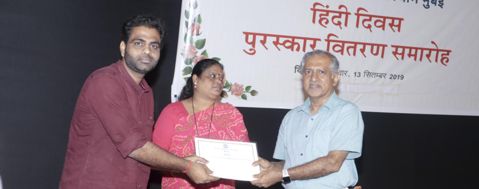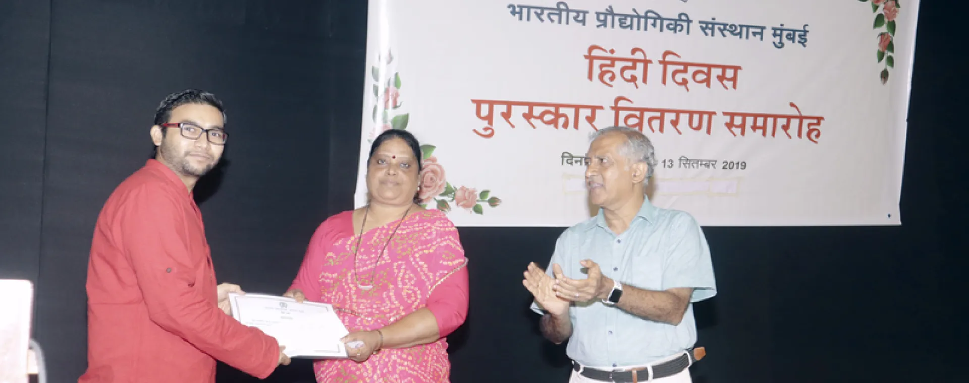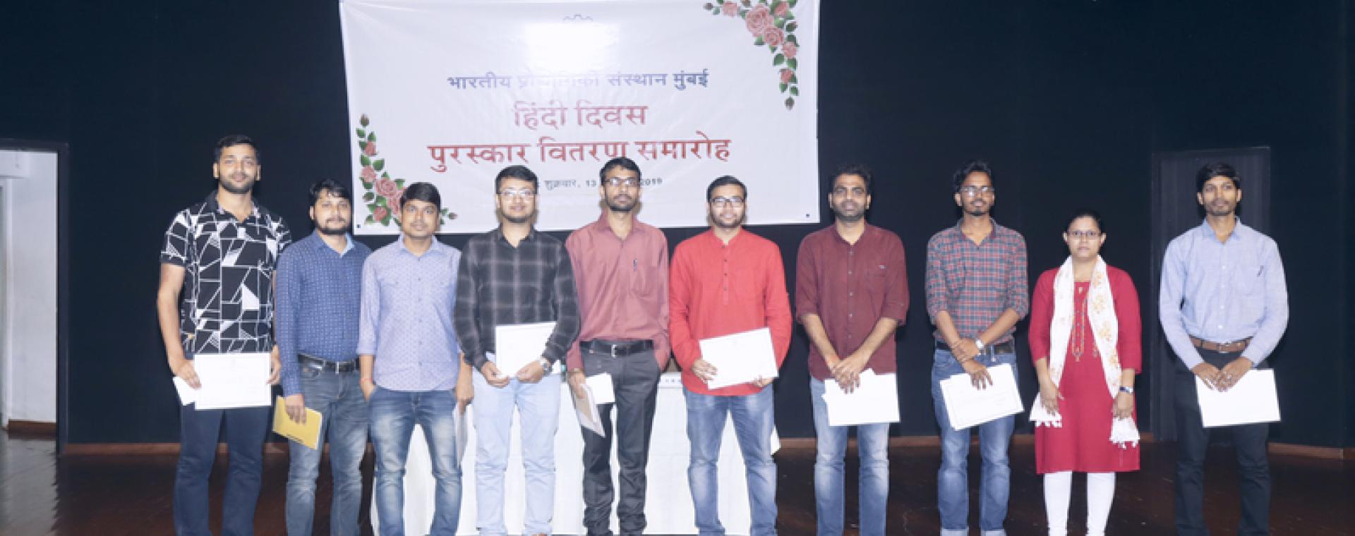 <p>The Hindi Cell at IIT Bombay organised 'Hindi Pakhawada' during September 1-14, 2019. The celebrations included competitions like Essay writing and Hindi translation. The programme aimed at encouraging the staff members to use Hindi in the official work.</p><p>The prize distribution function to felicitate the winners of the competitions was organized on September 13, 2019. Prof. Sunita Sakhare, Head of Hindi Department, S.N.D.T was the Chief Guest on the occasion and elaborated the importance of Hindi as an official language of the nation.</p><p>Hindi Officer Ms. Vaishali Bahulkar presented a brief Report of Implementation of Hindi in the Institute, objective of Official Language Implementation Committee of the Institute, participation of Institute staff in Hindi training typing, basic computer training in Hindi, ‘Parangant’ programme etc.</p><p>The certificates were presented by the chief guest Prof. Sunita Sakhare,and Prof. A.K. Suresh, Deputy Director (AIA) to the winners in the various competitions. <span style="font-size: 13.008px;">The vote of thanks was delivered by Hindi Officer Ms. Vaishali Bahulkar. </span></p><p>Following winners were felicitated during the Hindi Divas Celebrations 2019 : </p><p align="left">Hindi Essay Competition on September 3, 2019</p><ul><li>Mr. Shekhar Singh: First</li><li>Mr. Sandeep Chaturvedi: Second</li><li>Mr. Omesh Kumar Sharma: Third</li><li>Ms. Shamal Mahesh Padavl: Consolation prize</li><li>Mr. Tushit Kumar: Consolation prize</li><li>Mr. Mohammad Nasim: Consolation prize</li><li>Mr. Kumar Appaya: Consolation prize</li></ul><p align="left"><span style="font-size: 13.008px;">Hindi Translation Competition on September 4, 2019</span></p><ul><li>Mr. Shekhar Singh: First</li><li>Mr. Jitendra Jain: Second</li><li>Mr. Ravi Ranjan Kumar: Third</li><li>Mr. Tushit Kumar: Consolation prize</li><li>Mr. Mohammad Nasim: Consolation prize</li><li>Mr. Mrityunjay Kumar Mangalam: Consolation prize</li><li>Ms. Shamal Mahesh Padavl: Consolation prize</li></ul><p align="left"><span style="font-family: Verdana, Arial, Helvetica, sans-serif; font-size: 1em; white-space: pre-wrap;">Best Work in Hindi</span></p><ul><li>Mr. Tushit Kumar: Best Work in Hindi</li></ul><p><span style="font-size: 13.008px;">Hindi book exhibition was also organized in the Central Library during September 12-13, 2019 to encourage all the staff and students to read Hindi Books.The inauguration function was held on September 11, 2019. Publications Vasundhara, Paridrisha and Sahitya Sanskarmala Sahitya were displayed in the exhibition.</span></p><p align="left"> </p>