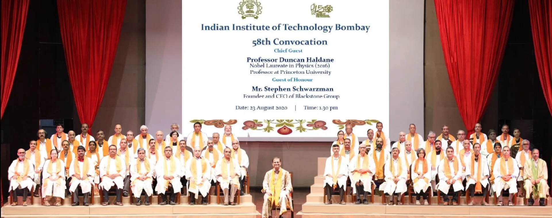 <p>The 58th convocation of IIT Bombay was held on August 23, 2020 from 1.30 pm onwards in Virtual Reality mode, keeping in view the safety measures during the ongoing pandemic. The Institute thought it best to arrange such a VR-convocation for the graduating students as we did not wish to put their health at risk but at the same time, we did not wish to deprive them of the sense of achievement and pride of passing out of India’s premier engineering Institute. The personalized avatar of each graduate received the degree certificate from the personalized avatar of the Director Prof. Subhasis Chaudhuri. All medal winners received their medals from the personalized avatar of the Chief Guest.</p><p>The entire event was telecast on DD India and DD Sahyadri channels as well as Youtube and Facebook live.</p><p>The convocation is normally a chance for students to socialize with their friends and faculty one last time. This year the institute provided an opportunity for students to do so via virtual presence, allowing students to roam around a virtual campus, visit their hostels and departments virtually, and bump into/meet their friends and faculty.</p><p>Prof. Duncan Haldane, co-recipient of the 2016 Nobel Prize in Physics, and a Professor of Physics at Princeton University, was the Chief Guest during the ceremony. Mr. Stephen Schwarzman, Chairman, CEO and Co-Founder of Blackstone, world-renowned investor and philanthropist was the Guest of Honor.</p><p>Professor Frederick Duncan Michael Haldane, FRS is currently the Sherman Fairchild University Professor of Physics at Princeton University and a Distinguished Visiting Research Chair at Perimeter Institute for Theoretical Physics. Prof. Haldane worked as a physicist at Institut Laue–Langevin in France and moved to the University of Southern California, and was at the University of California, San Diego until he moved to Princeton University in 1990. Prof. Haldane is known for a wide variety of fundamental contributions to Condensed Matter Physics including the theory of the Haldane gap in integer spin chain systems and theoretical studies of Luttinger liquids, fractional quantum Hall effect, exclusion statistics, entanglement spectra and many more. With David J. Thouless and J. Michael Kosterlitz, Prof. Haldane shared the 2016 Nobel Prize in Physics for “Theoretical discoveries of topological phase transitions and topological phases of matter".</p><p>Mr. Stephen A. Schwarzman is Chairman, CEO and Co-Founder of Blackstone, a leading global investment firm with $564 billion in AUM and businesses in private equity, real estate, hedge funds, credit, infrastructure and life sciences. In both business and philanthropy, he dedicates himself to tackling big problems with transformative solutions. His major gifts have helped establish a new Center at the University of Oxford to redefine the study of the humanities for the 21st century, create a new college at MIT dedicated to the study of artificial intelligence, build a first-of-its-kind student center at Yale, renovate and expand the New York Public Library, and found an international fellowship program, Schwarzman Scholars, at Tsinghua University in Beijing to educate future leaders about China.</p><p>Mr. Schwarzman is a member of the Council on Foreign Relations, Business Roundtable, and International Business Council of the WEF. He was named one of Barron’s “World’s Best CEO’s” in 2019; one of Forbes’ Top 50 “World’s Most Powerful People” in 2018; Forbes’ “Most influential person in finance” in 2016; and one of TIME’s “100 Most Influential People” in 2007. His honors include the Légion d'Honneur and Ordre des Arts et des Lettres from France, and Order of the Aztec Eagle from Mexico. In 2019, Mr. Schwarzman published his first book, What It Takes: Lessons in the Pursuit of Excellence, a global best seller which draws on his experiences in business, philanthropy, and public service.</p><p>Presenting the Institute’s Report for the year 2019-209, Prof. Subhasis Chaudhuri, Director of IIT Bombay informed that IIT Bombay continues to be a much sought-after destination for UG and PG studies. Prof. Subhasis Chaudhari said, “Producing top quality graduates who would be future leaders in industry, research and academia is the primary goal of IIT Bombay. The skill they developed, the work culture they picked up and the peers they made during their studies at IIT Bombay will help them achieve success in their lives. The entire nation will be looking forward to their contributions in taking our country ahead”. He further said, “Providing a virtual reality experience to all our graduates needed not only highly innovative steps but also a tremendous effort by our professors and staff. They did it for the students. Hopefully this will enthuse our graduates as well as other engineers in the country to think big and think innovatively”.</p><p>Chief Guest Professor Frederick Duncan Michael Haldane, FRS, in his speech said, “There is a lesson for everyone involved in research. Even if you are involved in a very goal-driven project, try to find some small share of your time to investigate unexpected curiosities that sometimes show up along the way. The analogy is that you may be walking along a path kicking a few rocks with your boots, but if you don’t look at your feet, you may miss a huge rough diamond that your kick exposed, and just walk on by. Of course, eventually someone else may walk that path and see the gem that you inadvertently unearthed but failed to notice”.<span style="font-size: 13.008px;"> </span></p><p>In his speech, Stephen A. Schwarzman, Chairman, CEO and co-founder of Blackstone, said, “India occupies a unique position in the world today, especially when it comes to technology, where it has established global leadership through its talent. Of the 72 Indian-origin engineers who have founded unicorns across the world, 50 percent are IIT alumni. IIT
