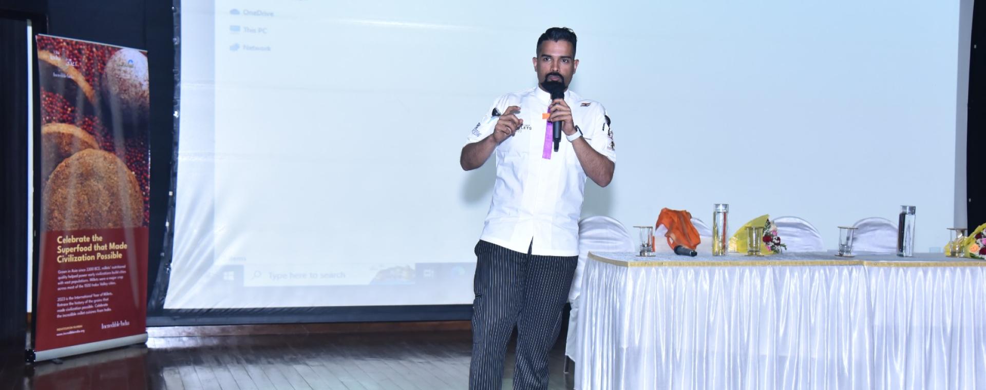 <p>To commemorate the International Year of Millets (2023), IIT Bombay and India Tourism Mumbai organized a joint workshop on February 28, 2023 at P.C. Saxena Auditorium. Students from various Mumbai colleges attended the workshop in large numbers. Mr. Jerson Fernandes, Executive Chef at Novotel Mumbai, hosted the session. Mr. D. Venkatesan, Regional Director (West and Central Region), India Tourism, welcomed everyone and introduced the guest speaker.</p><p>Mr. Fernandes spoke about the importance of millet and why they are referred to as a superfood. He even conducted an on-the-spot quiz at the end of the workshop. Students, staff and faculty from the Institute also took part in the workshop.</p>
