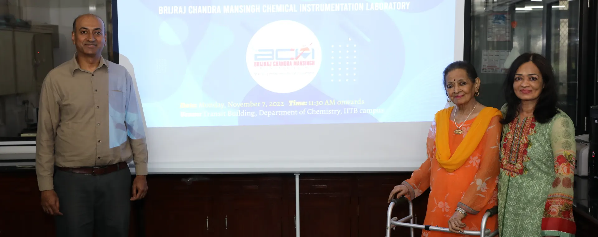 <p>IIT Bombay established the ‘Brijraj Chandra Mansingh Chemical Instrumentation Laboratory’ on November 7, 2022, through a generous contribution from IIT Bombay’s alumnus, Mr. Sanjay Mansingh (BTech, Electrical Engineering, 1992). The lab is a state-of-the-art facility housed in the Department of Chemistry on campus.</p><p>Set up in memory of Mr. Sanjay’s father, Shri Brijraj Chandra Mansingh, the lab will provide the latest and advanced equipment to students pursuing cutting-edge innovative research projects under the guidance of the Chemistry Department’s faculty. This modern facility will be accessible to all students and researchers of the Institute through an online booking portal and will also cater to more than 1,000 BTech, 200 BS/ MSc, and 350 PhD students. In addition, this lab will aid the Chemistry Department’s efforts to upgrade its research infrastructure.</p><p>The lab will play an instrumental role in the mission of the Department of Chemistry, to ensure high-quality training of students in the best practices of this discipline and help push the frontiers of our understanding of Chemical Sciences. IIT Bombay is grateful to Mr. Sanjay Mansingh for his generosity towards establishing the lab.</p>