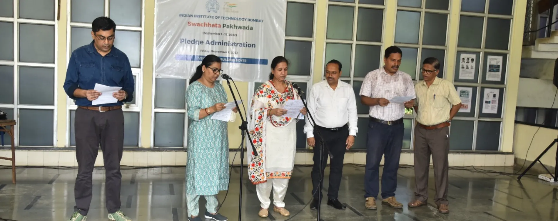 <p>IIT Bombay staff took the Swachhata Pledge at the foyer of Main Building (ground floor) on September 2, 2022. IIT Bombay will observe Swachhata Pakhwada 2022 between September 1-15, 2022 by organising various activities and events to create awareness about the need for cleanliness.</p><p> </p>