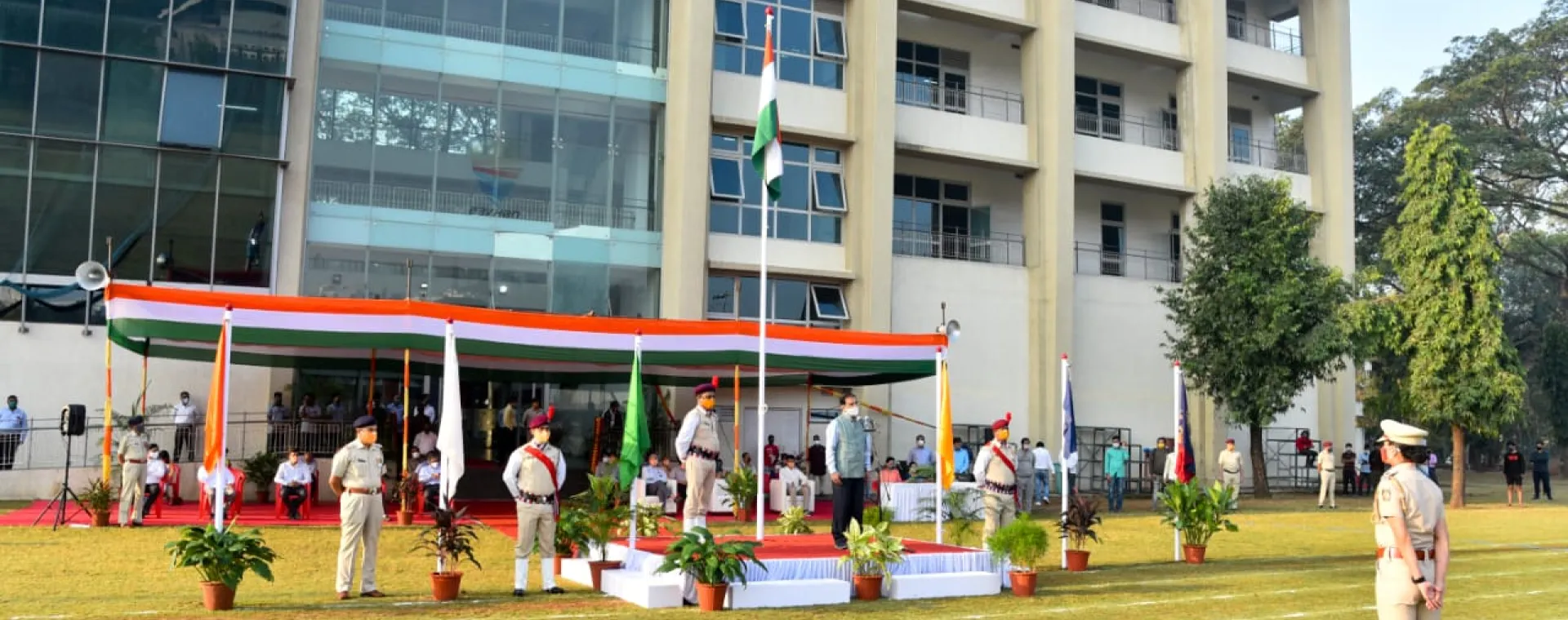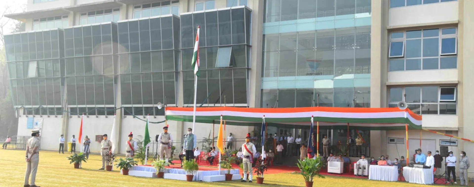 <p>The Indian Institute of Technology Bombay (IIT Bombay) celebrated the 72nd Republic Day at the Institute’s campus on January 26, 2021. Following the COVID-19 rules and guidelines, this year’s Republic Day was celebrated with minimum number of attendees by maintaining social distance.</p><p>The celebration began with the unfurling of the national flag by the Institute’s Director Prof. Subhasis Chaudhuri at the Institute’s gymkhana ground. Prof. Subhasis Chaudhuri addressed the gathering. IIT Bombay security staff gave the salute to the national flag. The entire programme was broadcast live. </p><p>This year, the Institute appreciated the Corona Warriors from IIT Bombay community who worked during the lockdown and extended their helping hand to the needy during the pandemic. As a token of gratitude, 938 IIT Bombay staff, faculty, students were felicitated and given certificates online in appreciation of the work performed during the pandemic. </p><p>Besides this, names of winners of an essay writing competition on “Satark Bharat, Samriddh Bharat (Vigilant India, Prosperous India): My Roadmap” held during Vigilance Awareness Week 2020 were displayed on screen during the live event. Respecting the COVID-19 guidelines, the Institute decided not to conduct any performances and march past on the occasion this year.</p>
