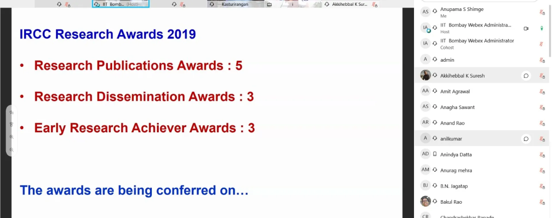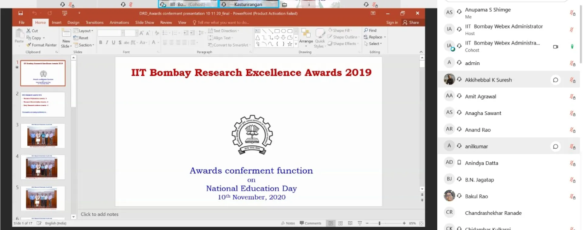 <p>Shri <span lang="EN-IN">Dr Ramesh Pokhriyal ‘Nishank’, Hon'ble Minister of Education, Government of India </span><span lang="EN-IN">inaugurates the National Education Day (NED) programme and confers IIT Bombay Research Excellence Awards</span></p><p><span lang="EN-IN">The Indian Institute of Technology Bombay commemorated the birth anniversary of India’s First Education Minister Maulana Abul Kalam Azad on November 11 by observing National Education Day (Rashtriya Shiksha Diwas).</span></p><p>On this occasion, IIT Bombay had organised a programme with Shri Dr Ramesh Pokhriyal ‘Nishank’, Hon'ble Minister of Education, Government of India as the Chief Guest on November 10, 2020. The Minister inaugurated the National Education Day programme (online) at 11am. Dr. K. Kasturirangan, Former Chairman, ISRO and Chairman of the committee for drafting the New Education Policy was the Guest of Honor for the occasion.</p><p>The Director Prof. Subhasis Chaudhuri gave away the IIT Bombay Research Excellence Awards 2019 in the esteemed presence of the Chief Guest and Guest of Honor. The IIT Bombay Research Excellence Awards were instituted since the last several years to recognize the R&D efforts of IIT Bombay faculty. The awards include:</p><p><!--[if !supportLists]--><span lang="EN-IN">1. </span><!--[endif]--><span lang="EN-IN">Research Publication Award (5 awards) given t</span><span lang="EN-IN">o recognize original research results in peer reviewed publications and/or other forms such as exhibits (e.g., design, film).</span> </p><p><!--[if !supportLists]--><span lang="EN-IN">2. </span><!--[endif]--><span lang="EN-IN">Research dissemination award (3 awards)</span><span lang="EN-IN"> given to recognize outstanding efforts to disseminate research through monographs/ books/ review chapters/ review papers.</span> </p><p><!--[if !supportLists]--><span lang="EN-IN">3. </span><!--[endif]--><span lang="EN-IN">Early research achiever award (3 awards)</span><span lang="EN-IN"> - awarded to young researchers who have already shown their potential for producing outstanding original work.</span></p><p><span lang="EN-IN"><span lang="EN-IN">Inaugurating the National Education day programme, Dr. Nishank in his address, said “Through ‘Study in India, Stay in India and Internationalization of Education', we are committed to establishing India as a global hub of education. To ensure high quality of education, it is also necessary that we move forward with cooperation, coordination and agreement with the leading universities of the world. This has been incorporated in NEP 2020 by inviting Top 100 World Universities to set up campus in India.”</span></span></p><p><span lang="EN-IN"><span lang="EN-IN">The Director of IIT Bombay Prof. Subhasis Chaudhuri said, “National Education Policy 2020 formulated by the Education Ministry is very comprehensive in its scope and through a proper assimilation we expect a big boost in the quality of education for all students in India. At IIT Bombay, we look forward to leveraging the key spirits embodied in this policy document in making our offerings more expansive, substantive and socially relevant. As we celebrate the National Education Day, we reaffirm our commitments to providing quality education and excellence in research.”</span></span></p><p><span lang="EN-IN"><span lang="EN-IN"><span lang="EN-IN">The Chief Guest conferred Professor Krithi Ramamritham Award for creative research-2019 </span><span lang="EN-IN">to Prof. Jayakrishnan Nair, Department of Electrical Engineering, IIT Bombay for his significant research contributions in "Uncertainty management in the smart, renewable-rich power grid", and to Prof. Varun Bhalerao, Department of Physics, IIT Bombay, for his significant research contributions in "Electromagnetic counterparts to gravitational wave sources". The award carries a citation and a cash incentive of Rs. 1,00,000/- each and it is given from endowment grant given by Prof. Jayant R. Harista, IISc, Bangaluru.</span></span></span> </p><p><span lang="EN-IN">Guest of Honour Dr. K Kasturirangan, in his address said, "National Education Policy 2020 represents an integrated yet flexible approach to education; dulying taking cognizance of the interconnectedness of the various phases of education in mind, and how the same will enable continuity, coherence and processes to ultimately realize an end-to-end educational road-map for the country."</span> </p><p><span lang="EN-IN">The inauguration was followed by a workshop on National Education Policy 2020. The workshop included talks by Prof. B. N. Jagatap, IIT Bombay, Dr. Jaitirth ‘Jerry’ Rao, entrepreneur, Founder of VBHC and HFFC and Prof. Dhruba J. Saikia, TIFR, ex-VC, Cotton College State University.</span></p><p><span lang="EN-IN">Research Publication Awards:</span> </p><p>(Sr.No, Awardee, Department/Centre: Theme Title)</p><p><span lang="EN-IN">1. </span><span lang="EN-IN">Prof. Maheswaran Shanmugam, Department of Chemistry: Influence of diamagnetic ion on slow relaxation of magnetization of lanthanide ion</span></p><p><span lang="EN-IN">2. </span><span lang="EN-IN">Prof. Nutan Limaye, Department of Computer Science and Engineering: Exploring the Frontiers of Algebraic Computations</span></p><p><span lang="EN-IN">3. </span><span lang="EN-IN">Prof. Rajneesh Bharadwaj, Department of Mechanical Engineering: Complex fluid droplets on engineered surfaces</span></p><p><span lang="EN-IN">4. </span><span lang="EN-IN">Prof. Soumyo Mukherji* and Prof. Suparna Mukherji%, *Biosciences and Bioengineering & % Environmental Science and Engineering: Synthesis and Immobilization of Silver Nanoparticles, and their Application in Water Disinfection</span></p><p><span lang="EN-IN">5. </span><span lang="EN-IN">Prof. Subhankar Karmakar, Environmental Science and Engineering Department: Precipitation extremes and urban flood management</span></p><p><span lang="EN-IN">Research Dissemination Awards</span></p><p>(Sr.No, A