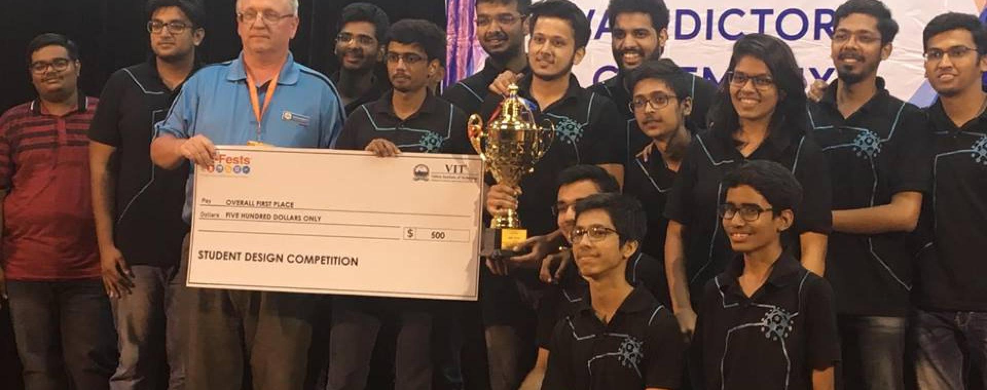 <p>A team of 14 BTech students working with the Unmesh Mashruwala Innovation Cell (UMIC), IIT Bombay won the Asia Pacific regionals of Student Design Competition (SDC) organized by American Society of Mechanical Engineering (ASME). The team comprised of one fourth year student, two third year students and 11 freshmen. The team was guided by Prof. Abhishek Gupta from the Mechanical Engineering Department.</p><p>The competition was held in VIT, Vellore during Feb 1 to 3, 2019. This year’s problem statement was to make a robot capable of picking and placing balls of different diameters (ranging from ping pong to basketball) placed on a pipe 3-5 cm in diameter and 20 cm in height. There were 1 on 1 matches and the team with higher score won the round.</p><p>IIT Bombay came first in the competition in which a total of 21 teams, including IIT Roorkee, IIT Indore, 3 NITs, one international team from Hong Kong Polytechnic University and VIT participated. Second place was secured by VIT Vellore, which scored 24 points against 26 points of the team UMIC in the finals. </p><p>UMIC, IIT BOMBAY will now represent India and Asia-Pacific region in the world finals of ASME-SDC,19’ to be held in November 2019 in Utah, USA.<br />Previously, team UMIC has won the world finals of ASME-SDC, 17’. Apart from ASME-SDC, UMIC also participates in two other competitions - Mahindra RISE: Self Driving Car competition and International Aerial Robotics Competition.</p><p>The team is looking for new opportunities to help the society while participating in these competitions to get as much experience as they can and be sharp. Also, these kinds of competitions teach the students how to think in a stressful environment and make fast and good decisions when on the edge.</p>