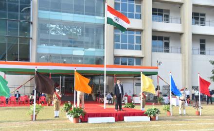 The Indian Institute of Technology Bombay (IIT Bombay) celebrated the 73rd Republic Day on January 26, 2022 following the COVID-19 rules and guidelines, with a minimum number of attendees maintaining social distance. The celebration began with the unfurling of the National Flag by the Institute’s Director Prof. Subhasis Chaudhuri at the Institute’s Gymkhana ground. IIT Bombay security staff and