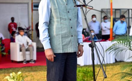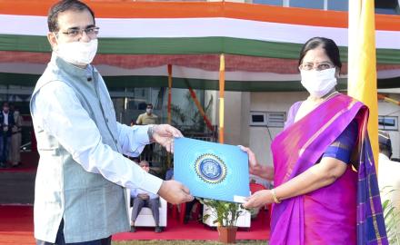 The Indian Institute of Technology Bombay (IIT Bombay) celebrated the 72nd Republic Day at the Institute’s campus on January 26, 2021. Following the COVID-19 rules and guidelines, this year’s Republic Day was celebrated with minimum number of attendees by maintaining social distance. The celebration began with the unfurling of the national flag by the Institute’s Director Prof. Subhasis Chaudhuri
